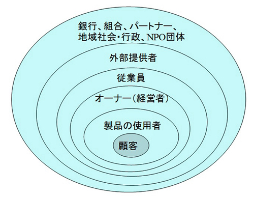 顧客、製品の使用者、オーナー、経営者、提供者、銀行、組合、行政、NPO団体などが考えられます。
